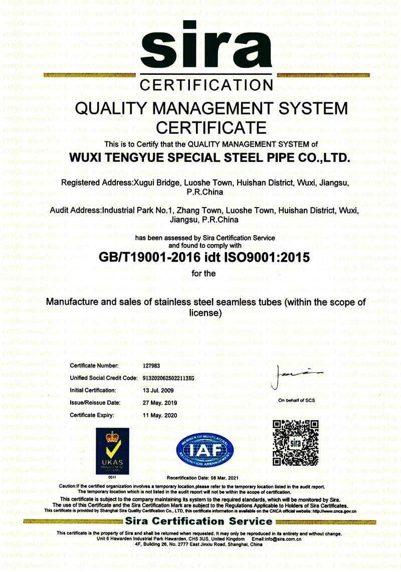 無錫騰躍特種鋼管有限公司創建于1987年,地處江蘇省無錫市惠山區洛社鎮。公司占地面積18萬平方米,現有員工350人,是一家專業生產不銹鋼無縫管的企業,年產能5萬噸。主要規格:外徑6~630mm、壁厚0.7~40mm。主要材質:奧氏體、奧氏體-鐵素體、鎳基合金等。 公司是中石化、中石油、中海油、核電的供應商網絡成員單位,是江蘇省AAA級信用單位。公司先后通過ISO9001質量管理體...