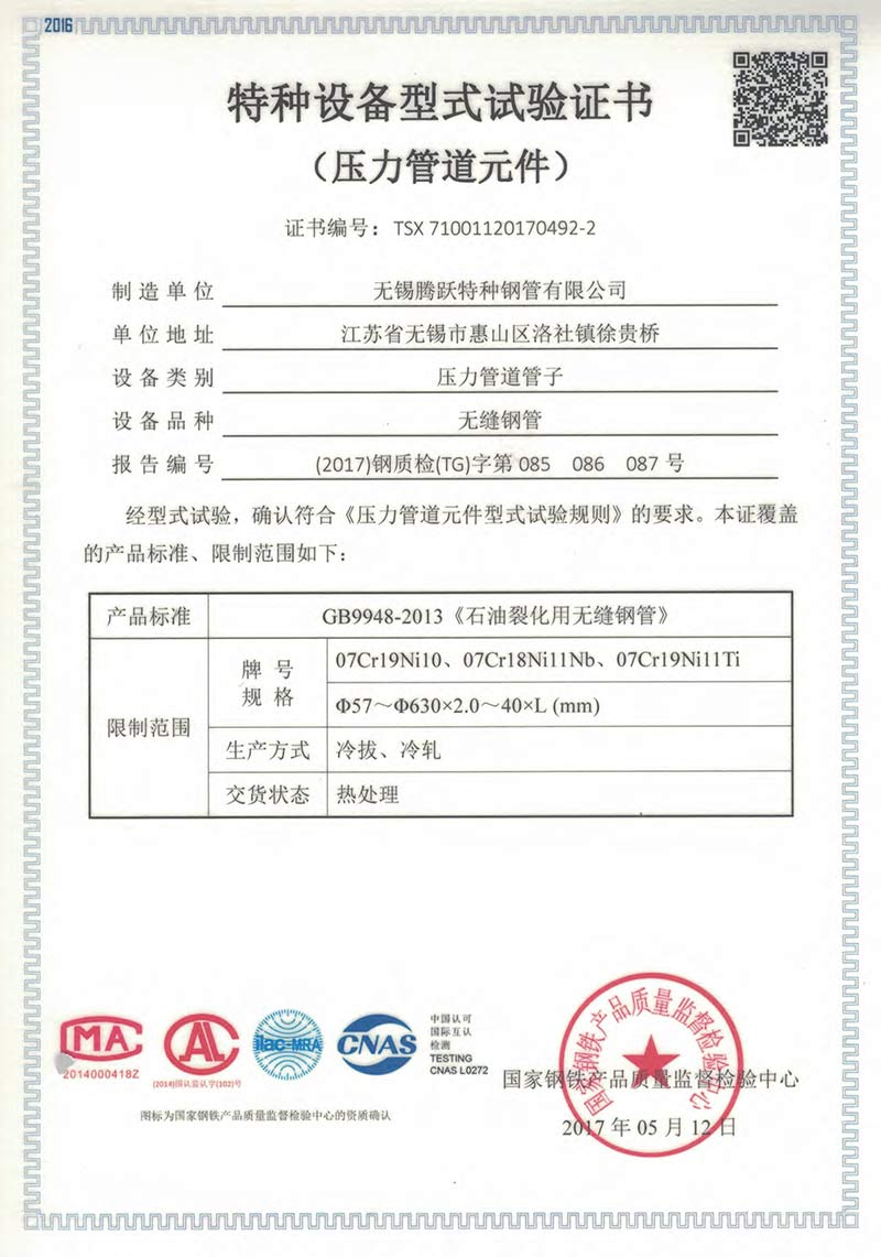 無錫騰躍特種鋼管有限公司創建于1987年,地處江蘇省無錫市惠山區洛社鎮。公司占地面積18萬平方米,現有員工350人,是一家專業生產不銹鋼無縫管的企業,年產能5萬噸。主要規格:外徑6~630mm、壁厚0.7~40mm。主要材質:奧氏體、奧氏體-鐵素體、鎳基合金等。 公司是中石化、中石油、中海油、核電的供應商網絡成員單位,是江蘇省AAA級信用單位。公司先后通過ISO9001質量管理體...