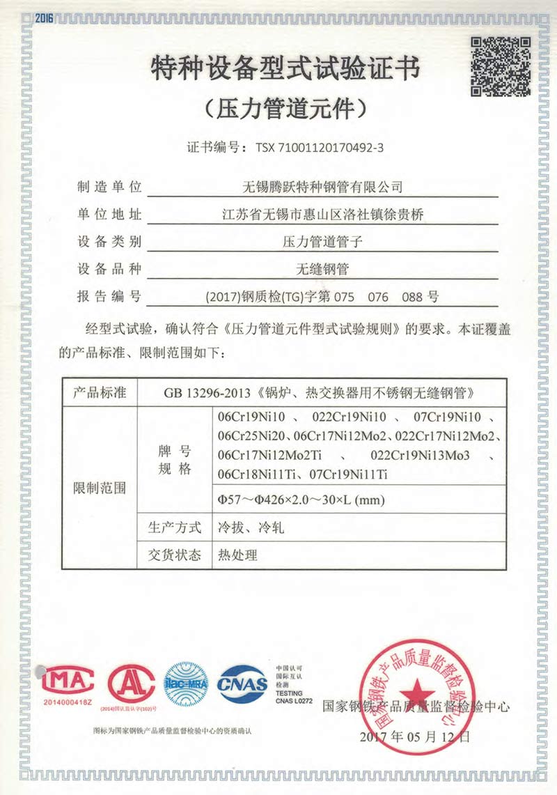 無錫騰躍特種鋼管有限公司創建于1987年,地處江蘇省無錫市惠山區洛社鎮。公司占地面積18萬平方米,現有員工350人,是一家專業生產不銹鋼無縫管的企業,年產能5萬噸。主要規格:外徑6~630mm、壁厚0.7~40mm。主要材質:奧氏體、奧氏體-鐵素體、鎳基合金等。 公司是中石化、中石油、中海油、核電的供應商網絡成員單位,是江蘇省AAA級信用單位。公司先后通過ISO9001質量管理體...